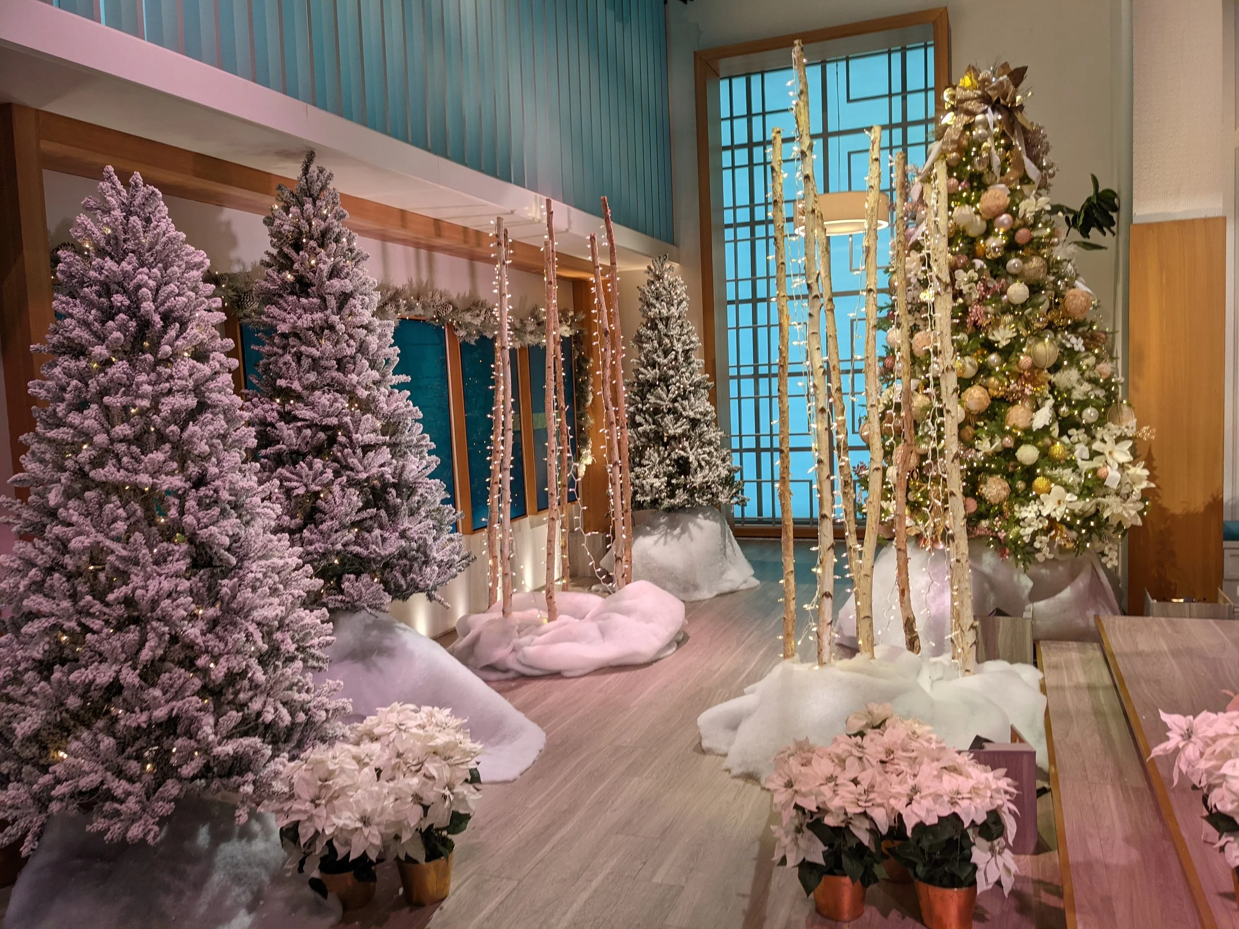 The holidays were always big on “The Talk”, and we would set and reset all the decoration each episode as we pre-filmed episodes before our winter break. That meant each piece had to be easily and quickly movable, and able to be set in exactly the same spot every time. It was a challenge, but our team was fantastic!